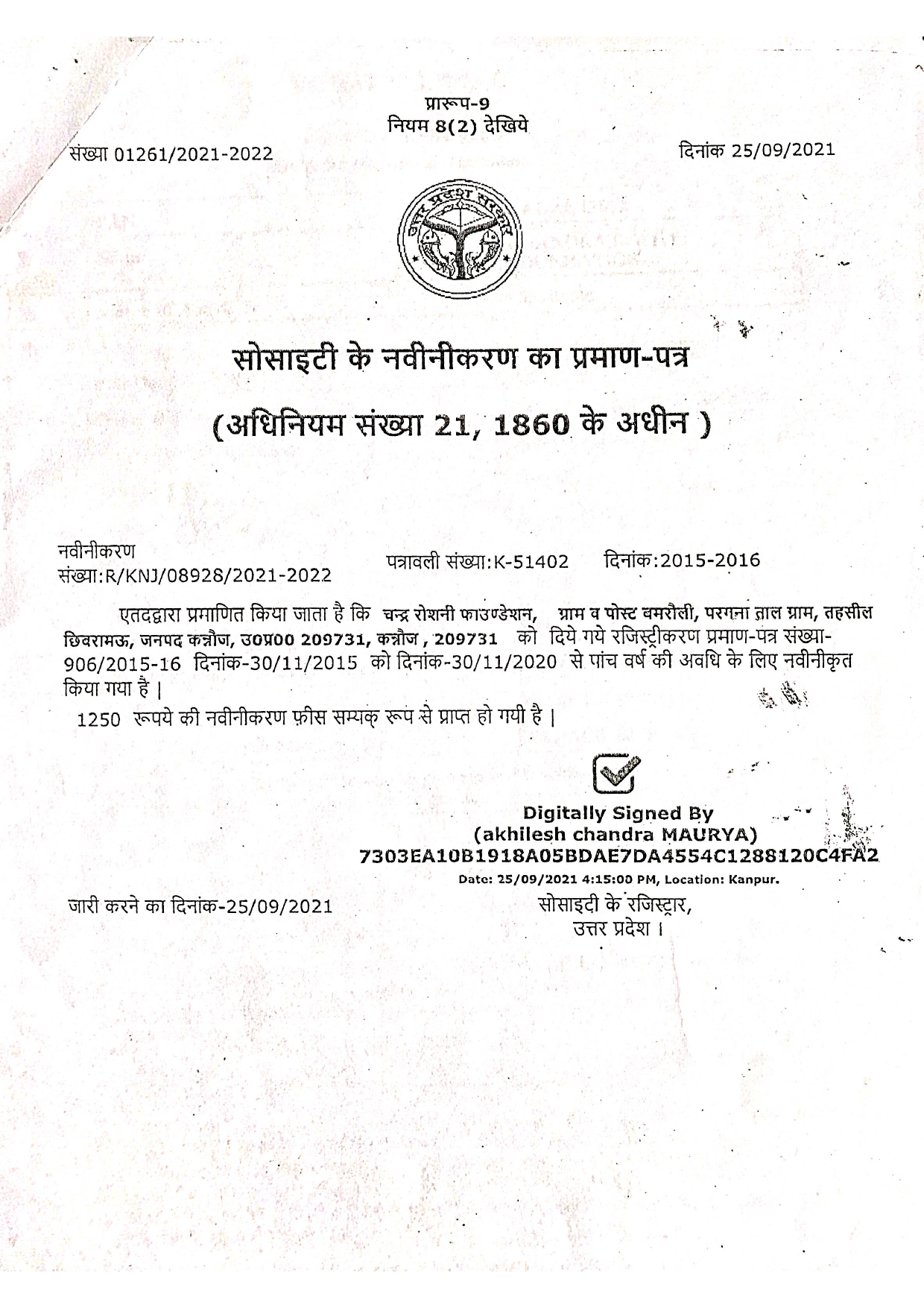H/O- In Saint X’aviers convent Kannauj (UP)- 209721